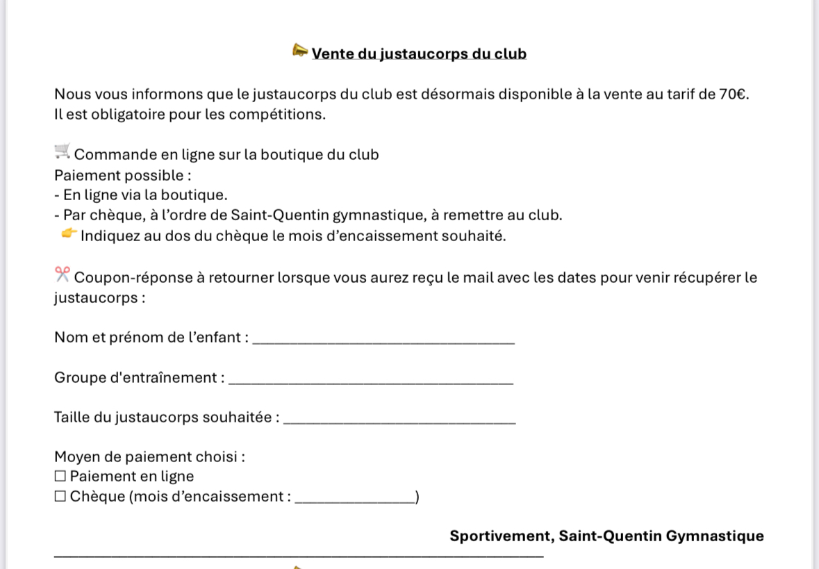 Pré commande NOUVEAU JUSTAUCORPS CLUB 2025- Prix